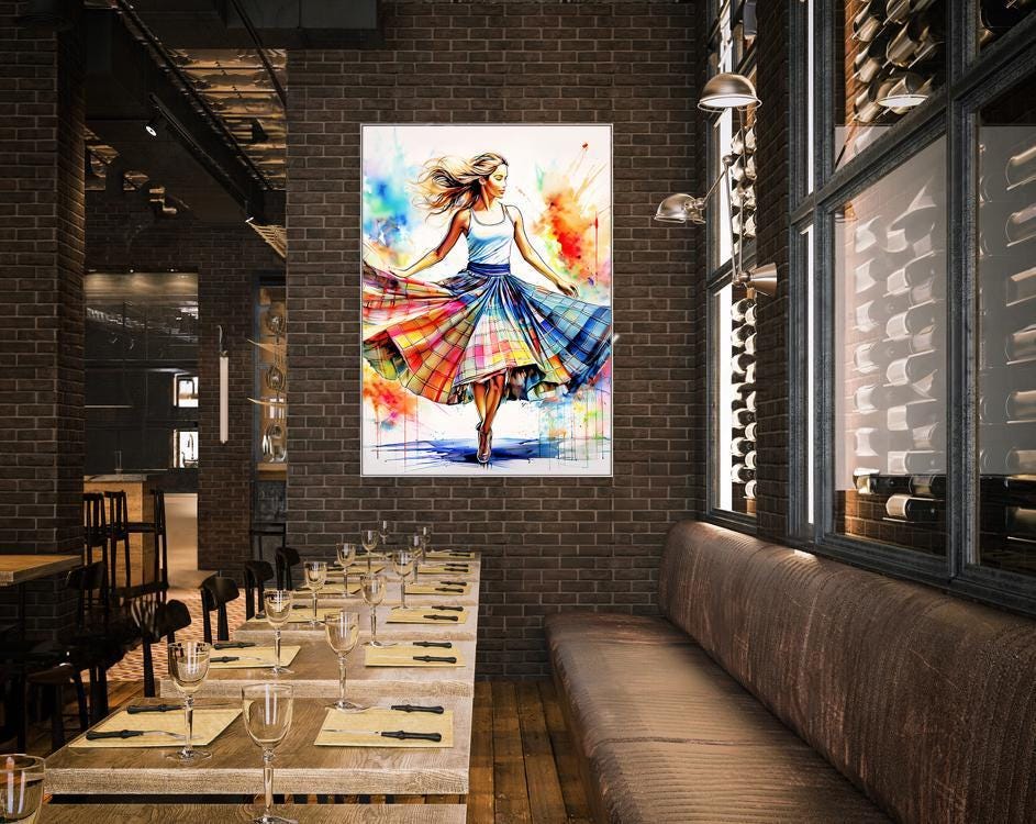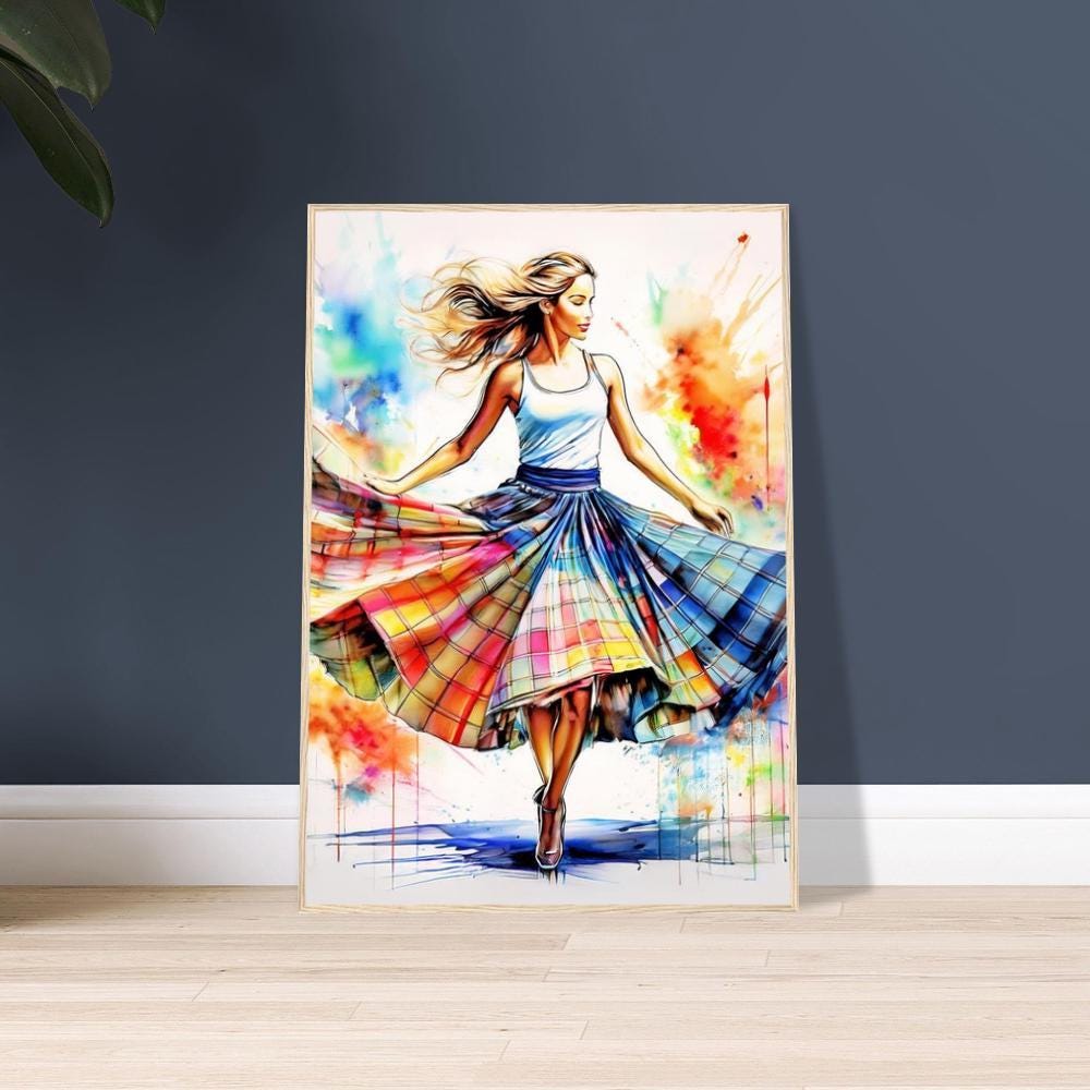 Discover the charm of framed art that brings a touch of Scottish heritage into your home. This exquisite tartan skirt watercolor showcases a graceful Scottish dancer, making it a perfect addition to any wall art collection.