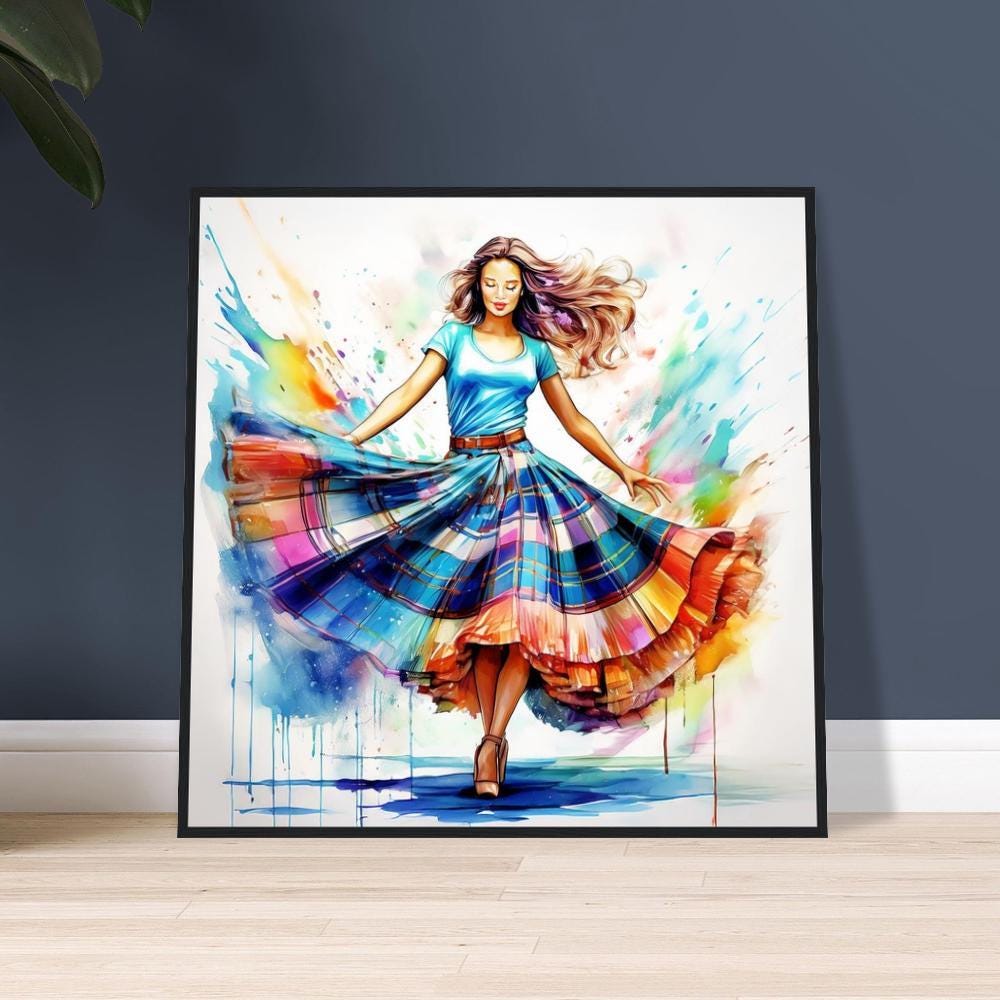 Discover the charm of framed art that captures the grace of a tartan skirt in motion. This Scottish dancer watercolor print brings a touch of authentic Scottish culture and elegance to your walls, perfect for any lover of Scottish home decor.