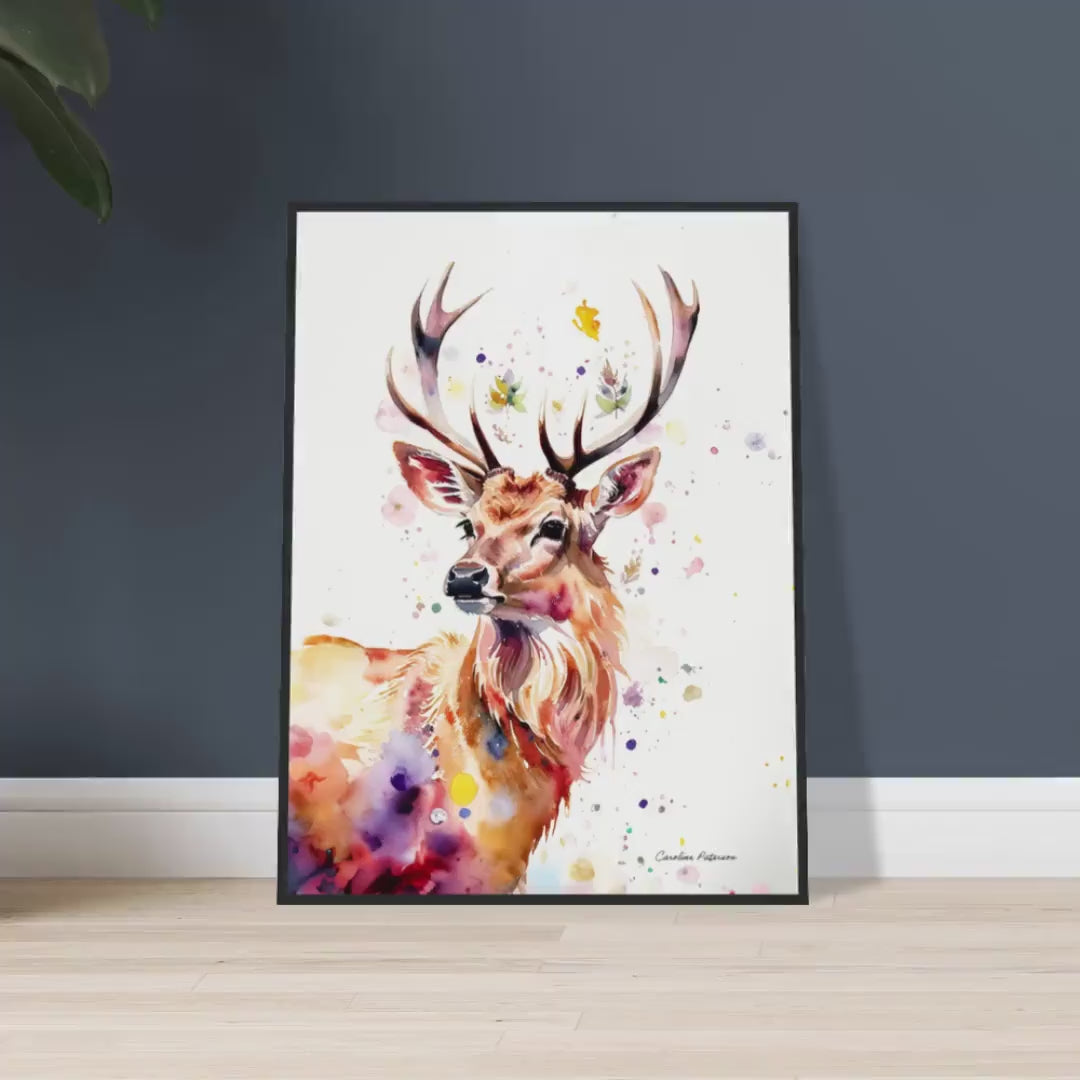 Immerse yourself in the rich cultural heritage of Great Britain with this stunning watercolor art print. Our red deer poster is printed on heavyweight 200 gsm (80 lb) FSC-certified white matte paper, offering a smooth, natural, uncoated finish that feels luxurious and durable.