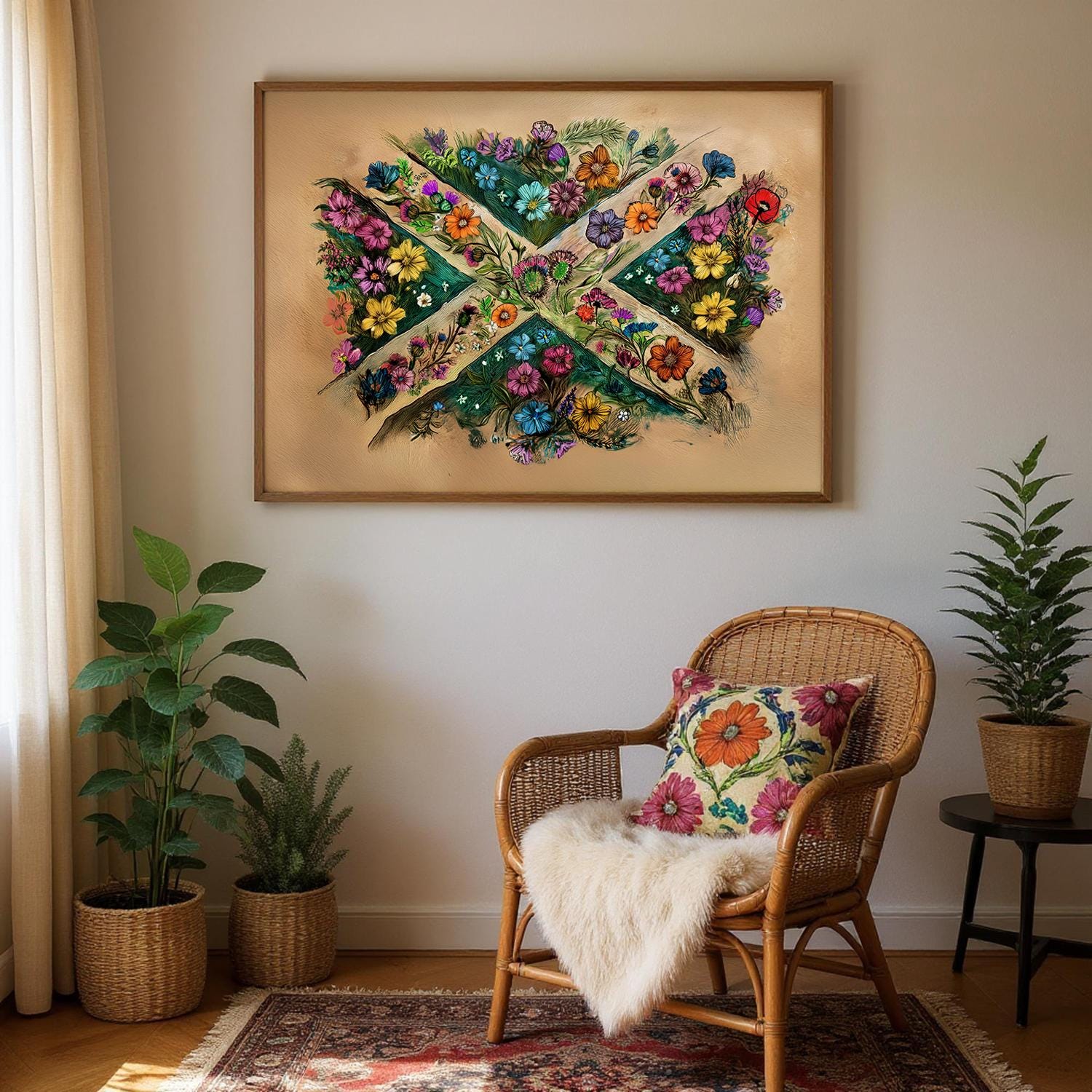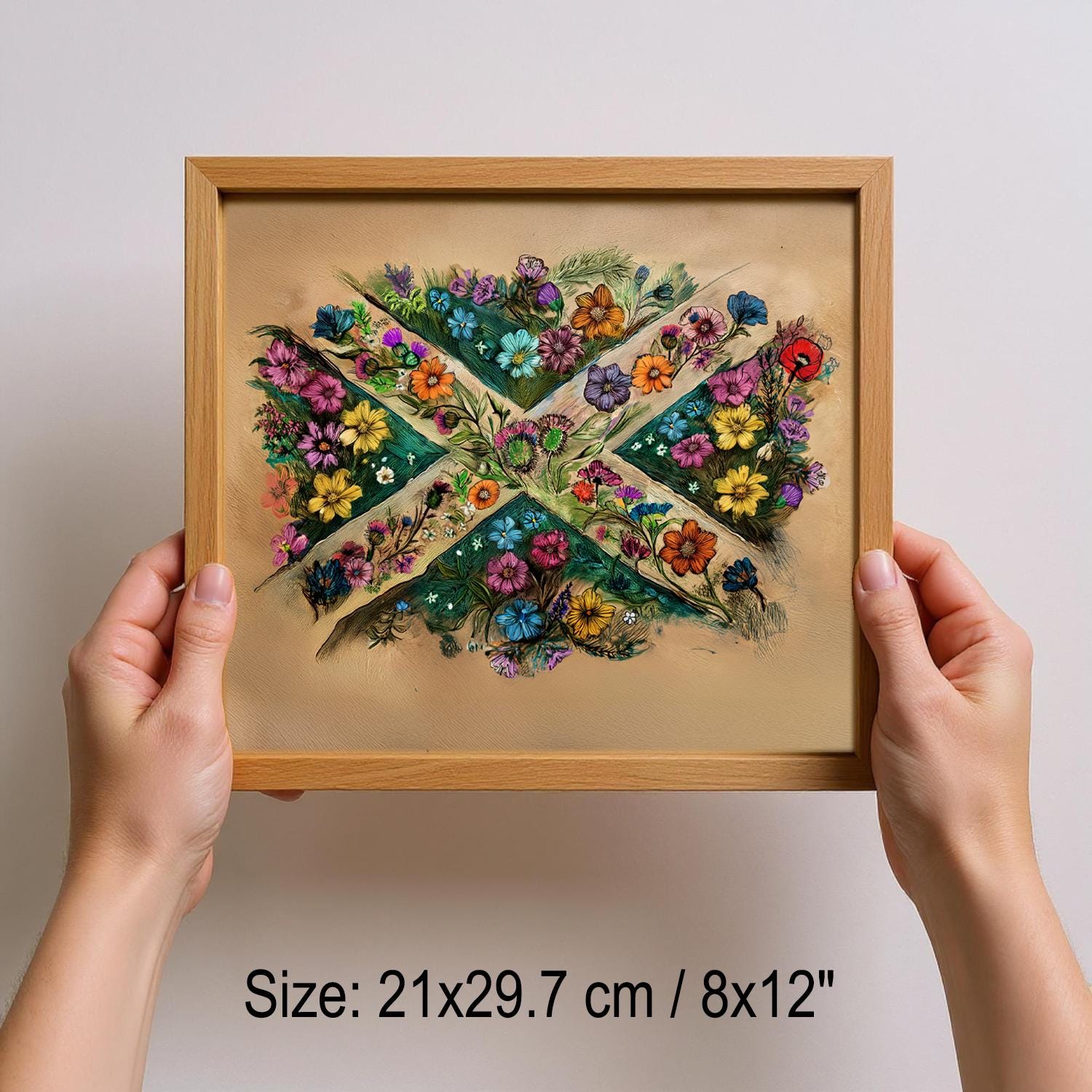 Celebrate Scottish heritage and patriotism with this framed Scottish flag art, featuring handdrawn art. Our sturdy wooden framed posters come ready to hang and are printed on heavyweight white matte paper with a smooth, luxurious finish—designed to stand the test of time.