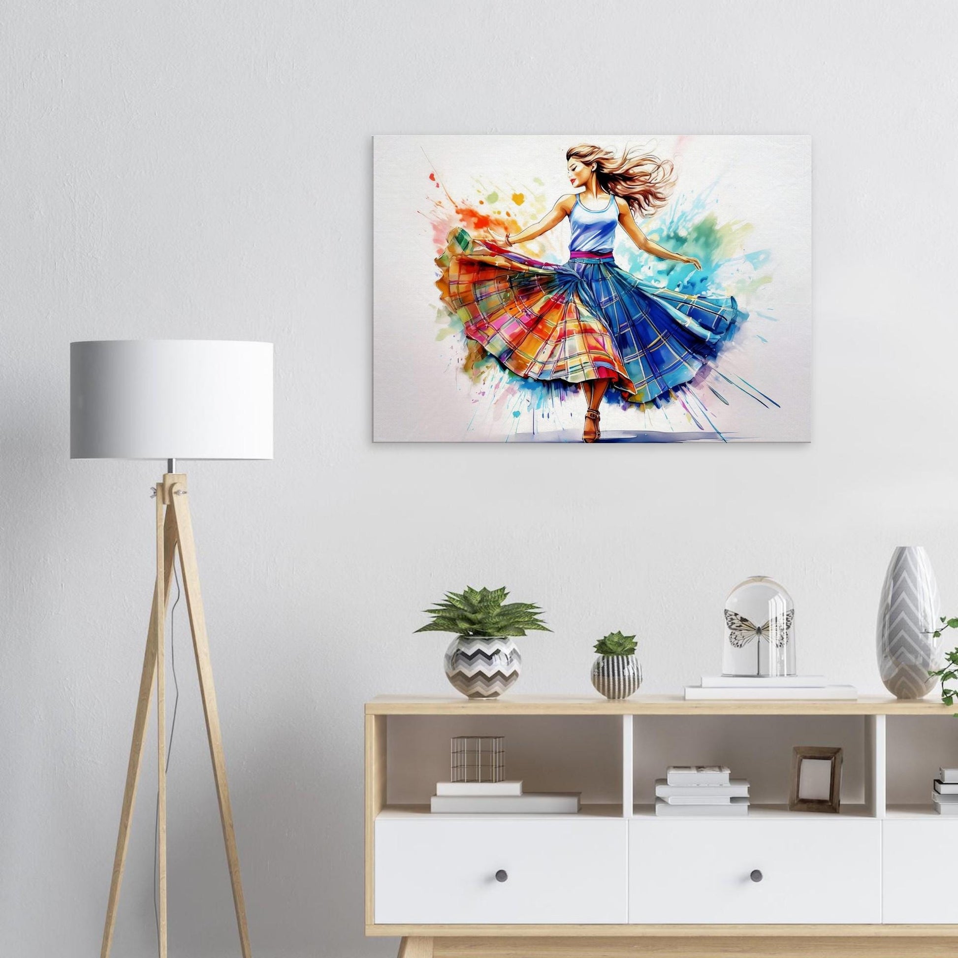This Scottish art piece is an ideal gift for lovers of dancing art and tartan skirt designs alike. Whether displayed in a living room, hallway, or dance studio, it brings a vibrant splash of culture and movement to any wall.