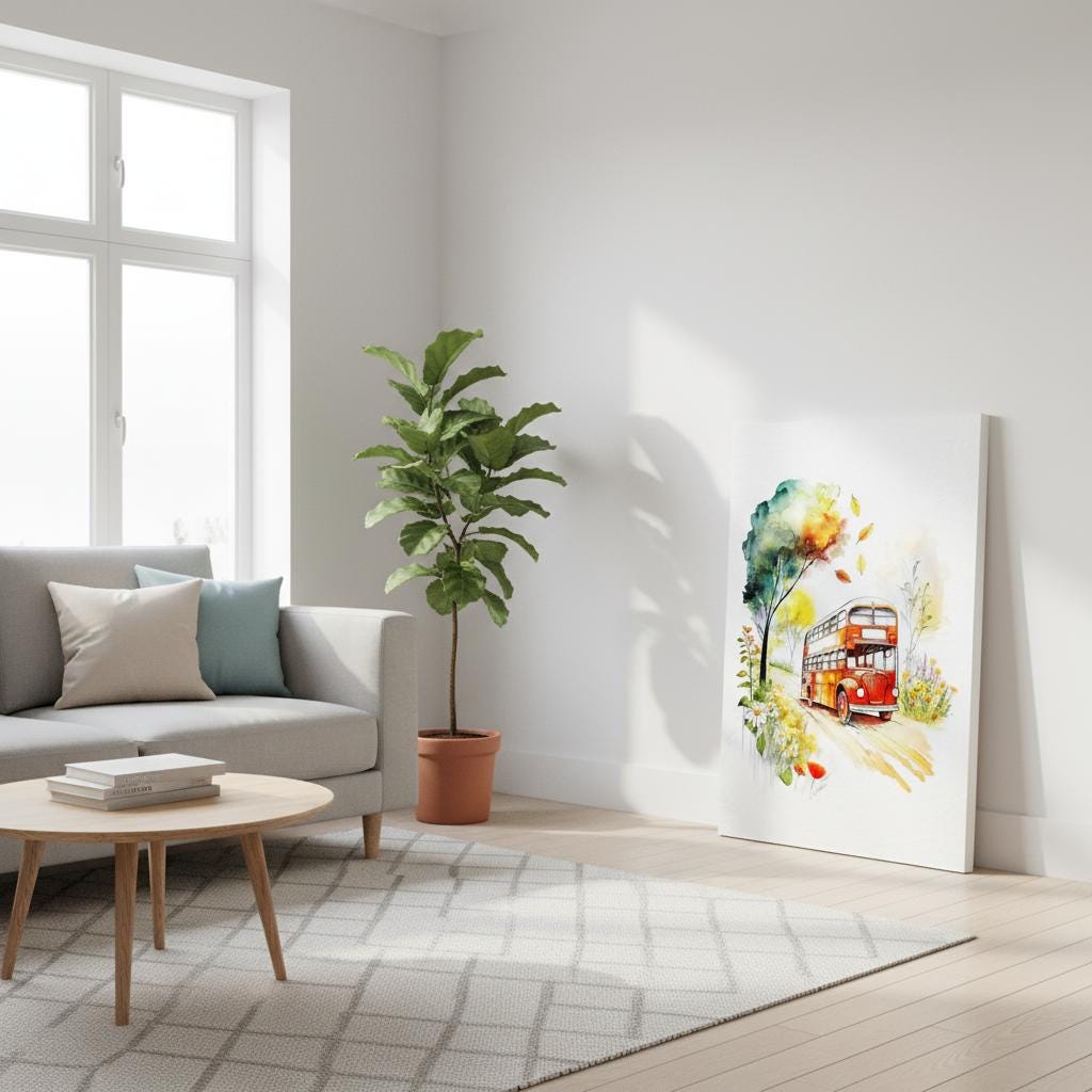 This urban British decor piece is mounted on a sustainable wood frame made from FSC-certified stretcher bars, combining eco-friendly materials with sturdy support. The ready to hang canvas comes with an included hanging kit, making installation quick and effortless. Tested for colorfastness and durability, this iconic London bus painting maintains its rich hues and texture for years.