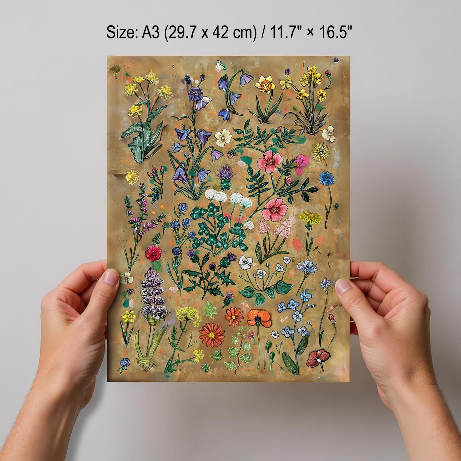 Handdrawn Wildflowers Poster - Floral Wall Decor for England, Scotland, Wales & Ireland