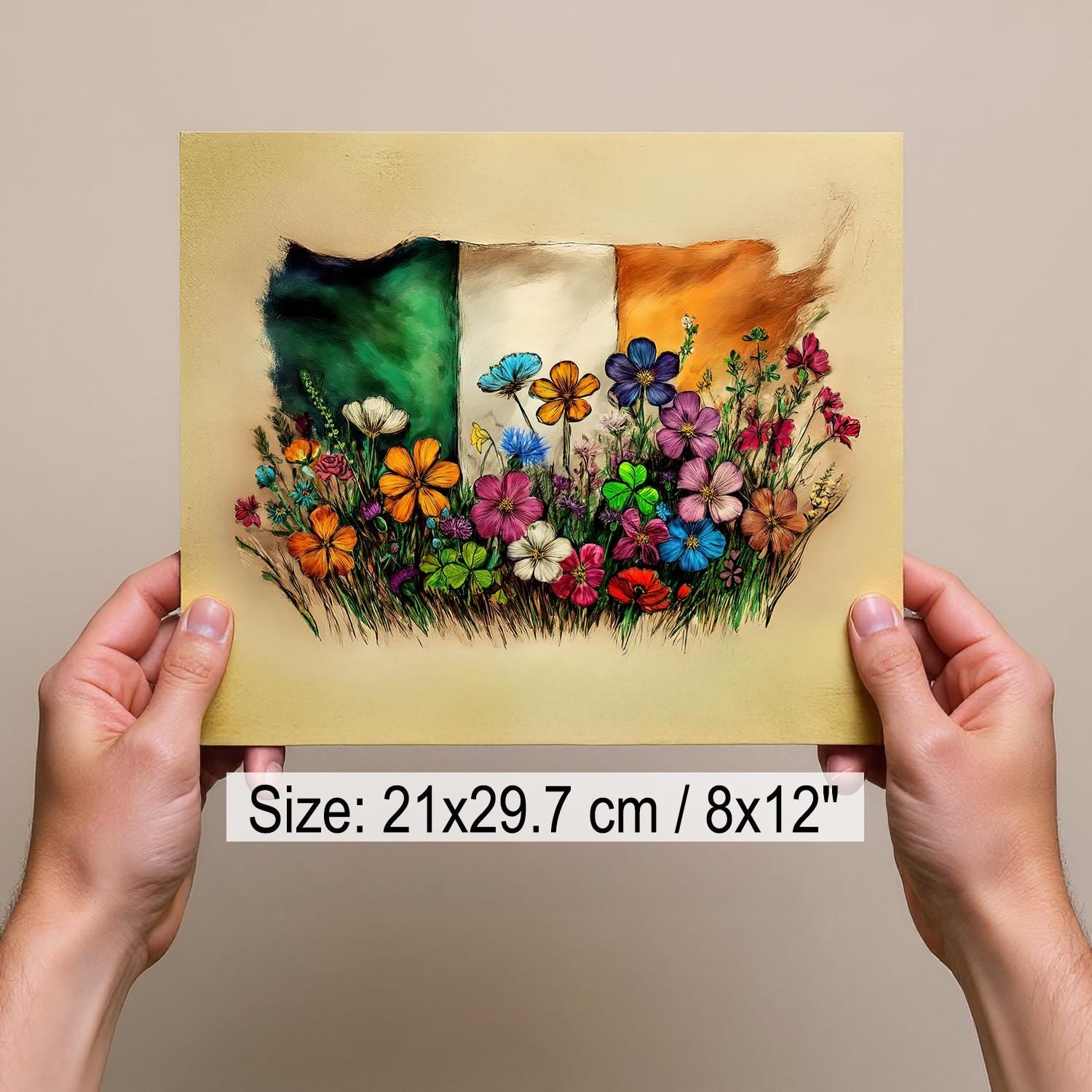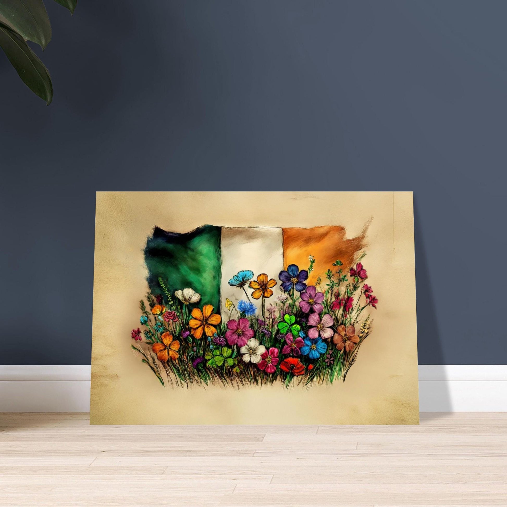 Celebrate UK heritage art with this hand drawn matte paper poster featuring the Irish Flag; Raise the Colours om style! Perfect for patriots who proudly want to display the flag of Ireland.