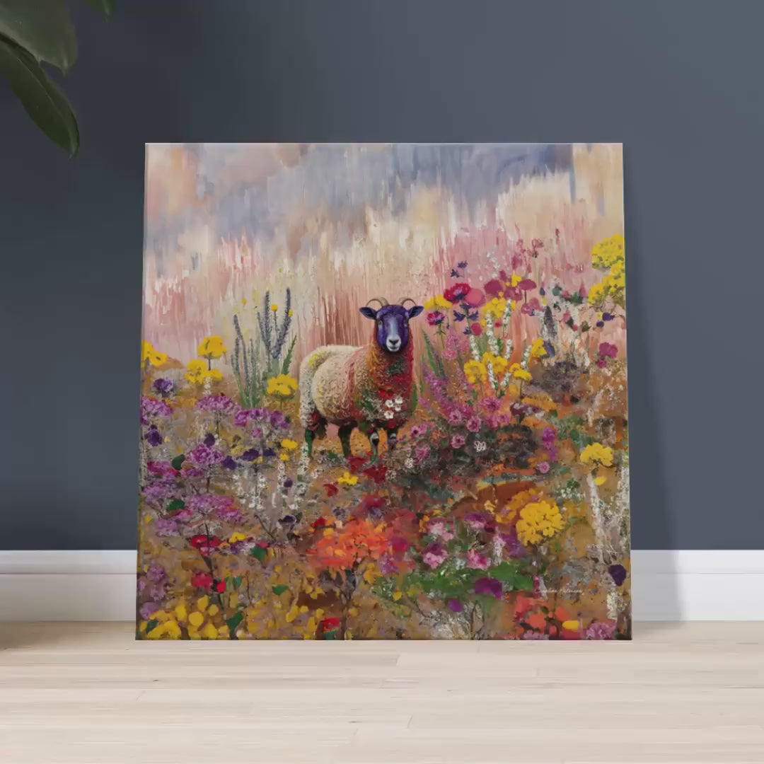 Scottish Blackface Sheep Canvas Print: Pink Floral Highland Art