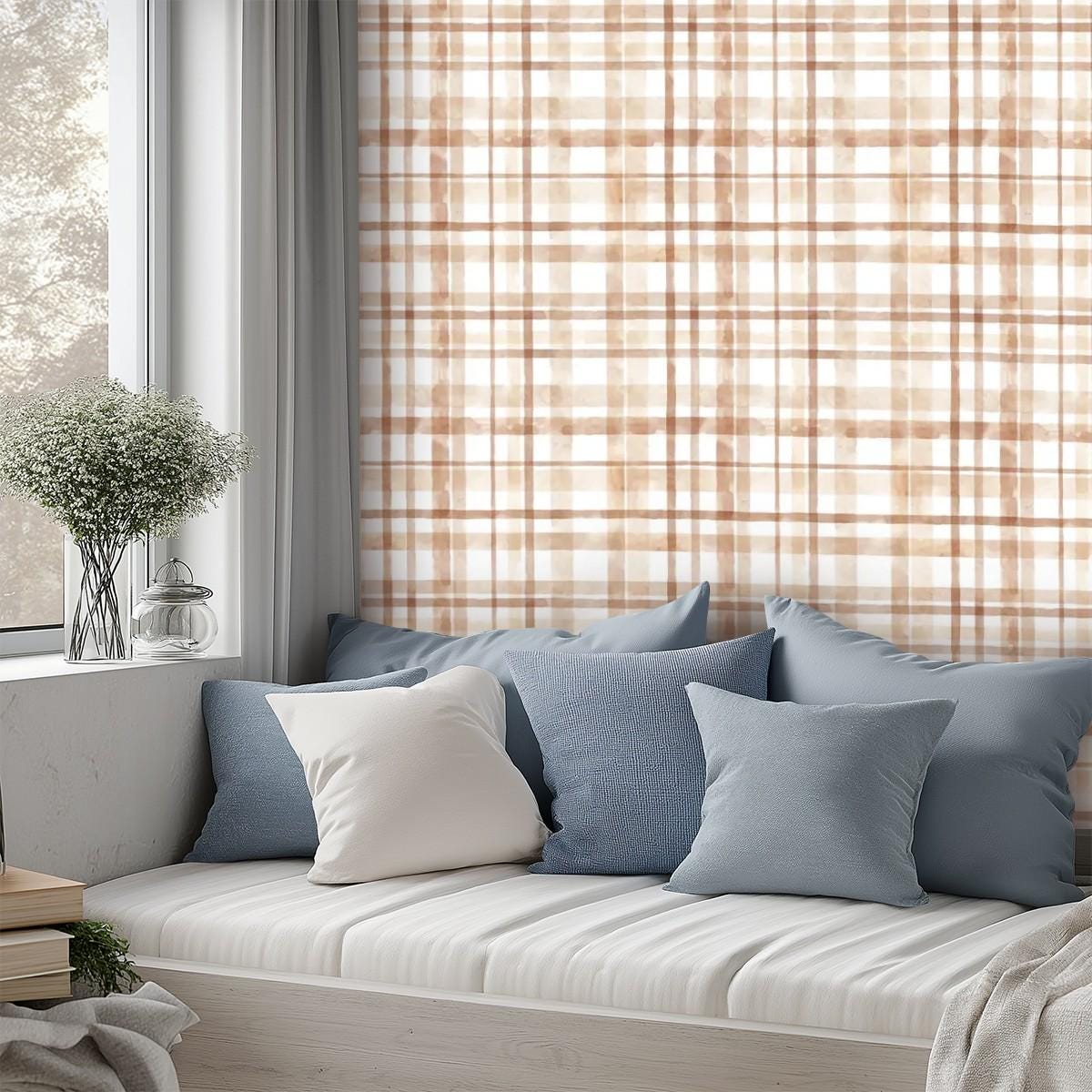 Self Adhesive Canvas Wallpaper Mural Cottage Beige - Plaid Wallpaper