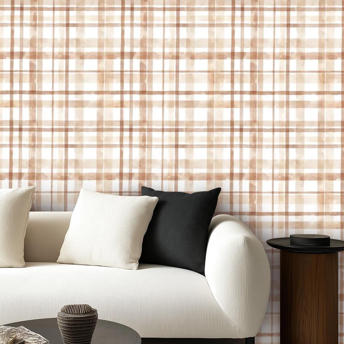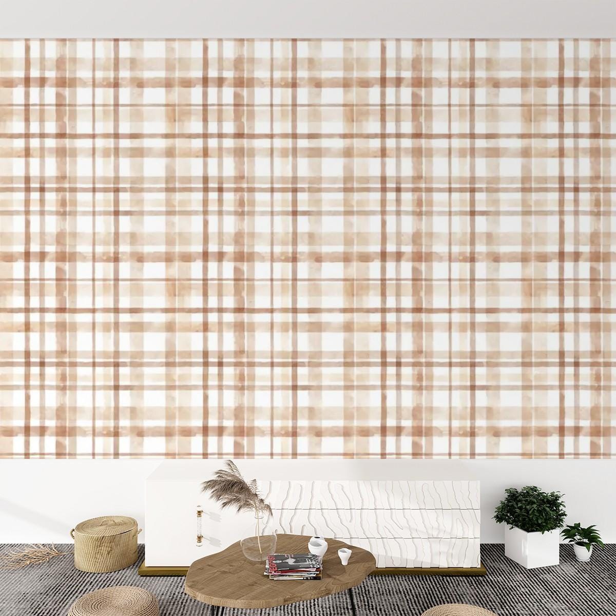 Self Adhesive Canvas Wallpaper Mural Cottage Beige - Tartan Plaid Wallpaper