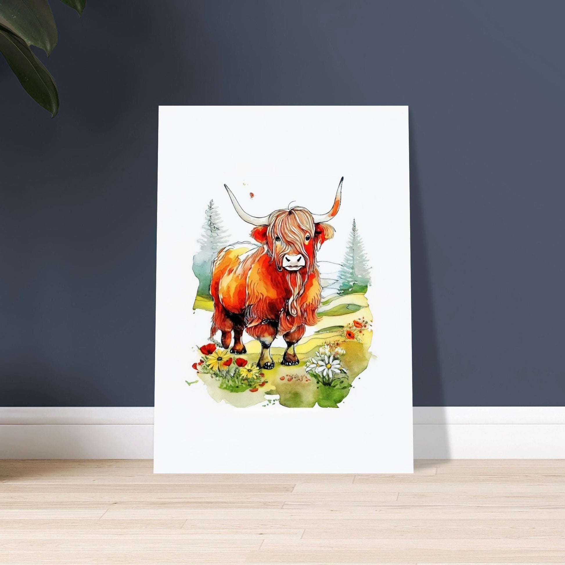 Discover the charm of a shaggy Highland cow and bring a touch of rustic elegance to your home with this Cow poster. This unique animal illustration perfectly captures the spirit of the UK, making it an ideal addition to any home decor.