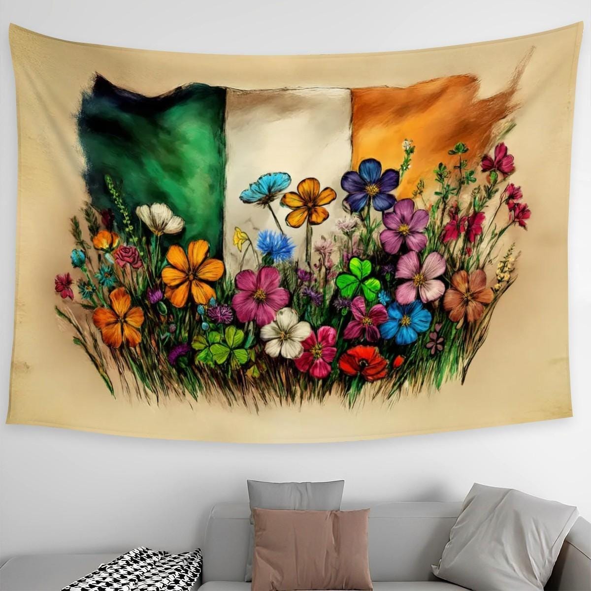 This XL Wall Tapestry features a hand drawn Irish flag design, measuring 90"x60" (228x152 cm), perfect for raising the colours in any space. Crafted from high-quality polyester, this tapestry is soft, durable, and lightweight, making it ideal for both indoor and outdoor use. The single-sided sublimation printing ensures vibrant colors that celebrate the Flag of Ireland with lasting clarity.